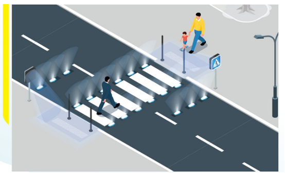SafeWalk est un passage piéton lumineux qui change de couleur à l'approche d'une voiture et s'illumine la nuit pour sécuriser la traversée des piétons en zone rurale.